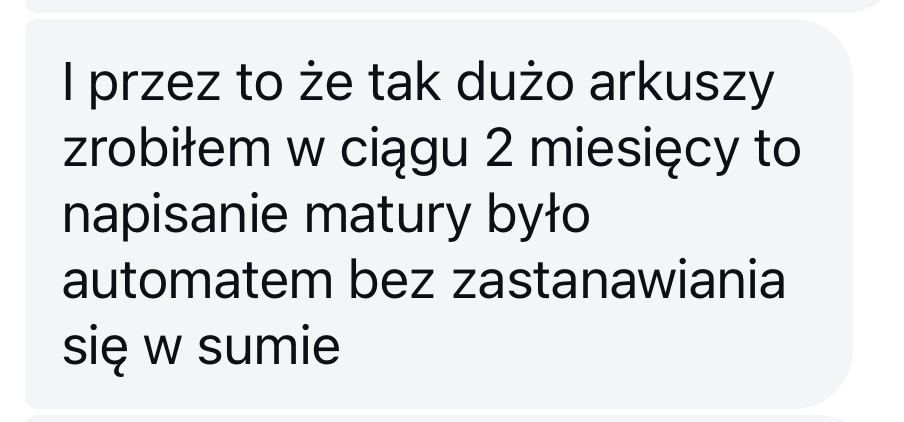 - Później rozwiązywał 3 arkusze maturalne dziennie